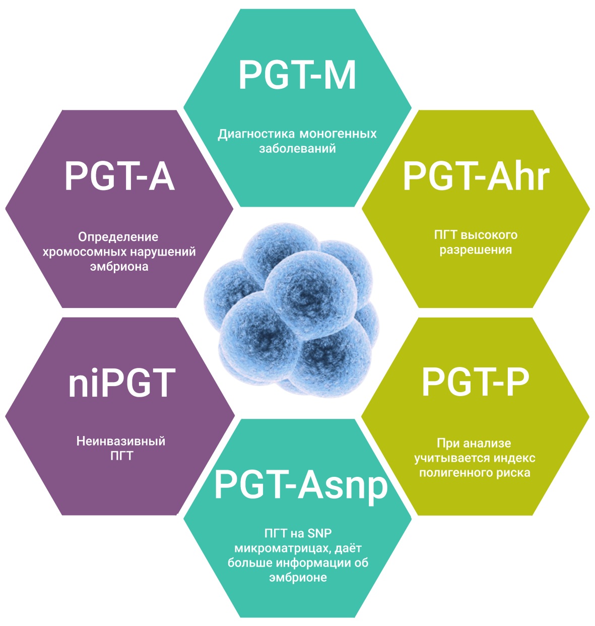 микроперестройки, триплоидии, потеря гетерозиготности, кариомаппинг, определение контаминации, родства эмбриона и многое другое.